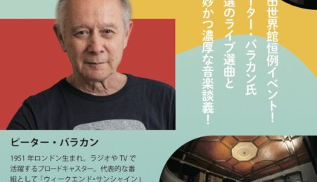 大人気の高田世界館恒例イベント!!迫力の音響セットで聴くピーター・バラカン氏厳選のライブ選曲と軽妙かつ濃厚な音楽談義! 映画館にライブ用の音響セットを組み、ピーターさんのナビゲートのもとで大迫力の音楽が楽しめることで…
