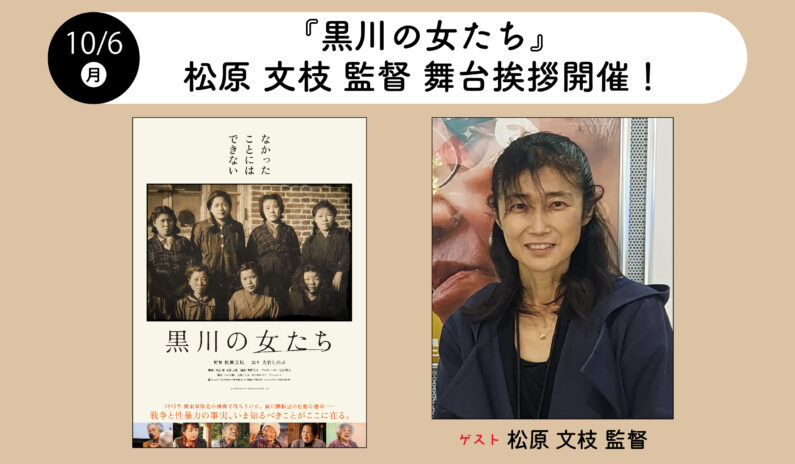 現在絶賛公開中の『黒川の女たち』のヒットを記念して、10月6日(月)に監督の松原文枝さんによる2度目の舞台挨拶を開催いたします。