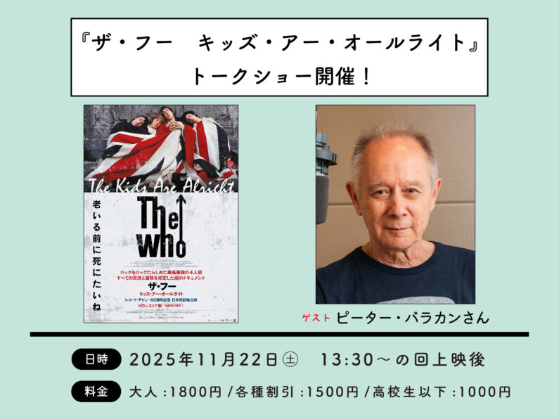 11月22日(土)〜上映の『ザ・フー キッズ・アー・オールライト』に合わせて、公開初日にピーター・バラカンさんによるトークショーを開催いたします!!